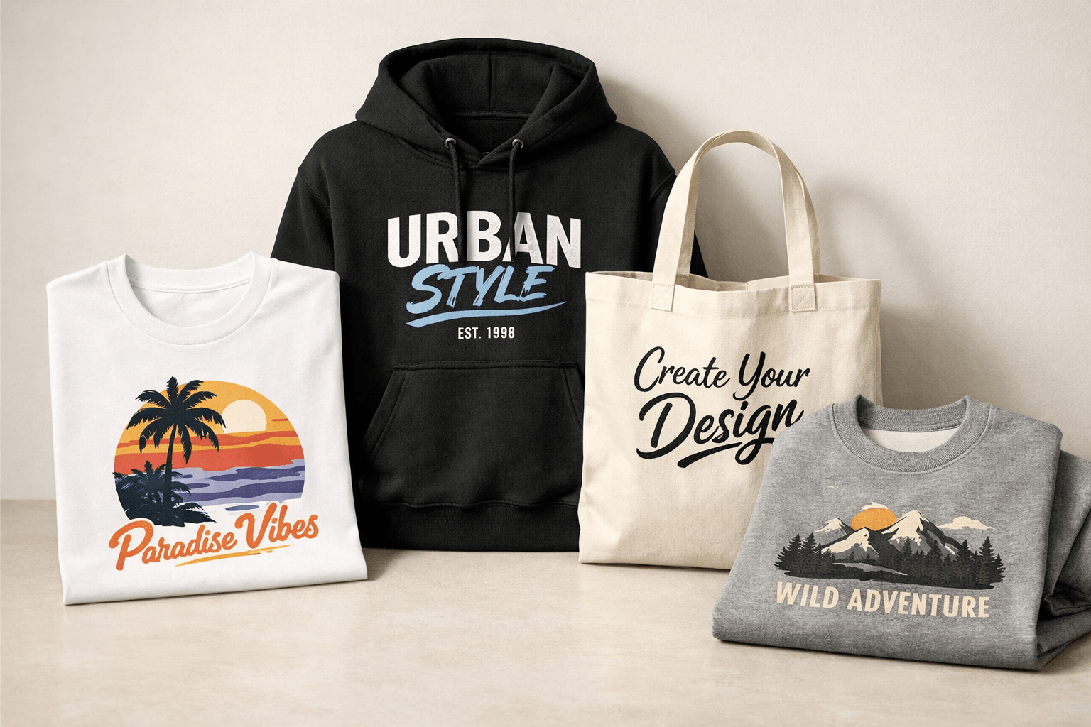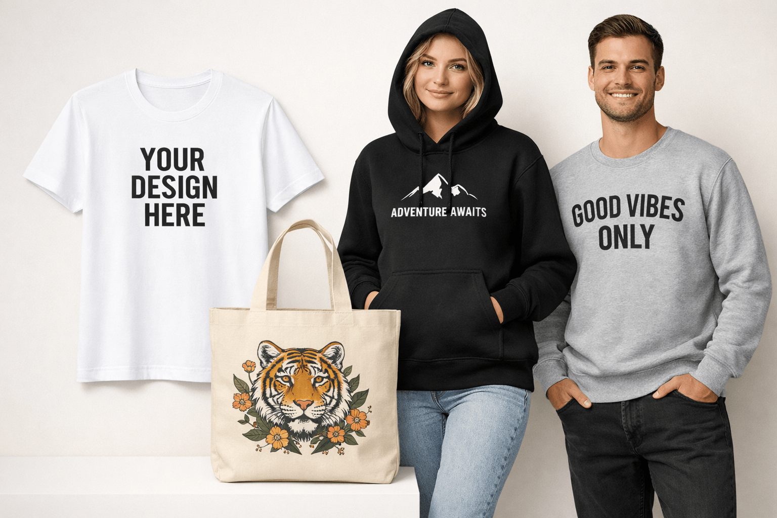• Welke kleding je aanlevert (bijv. t-shirts, hoodies, etc.)